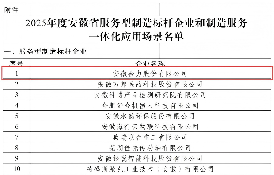 融合發(fā)展顯成效 標桿引領(lǐng)創(chuàng)一流——合力入選安徽省兩業(yè)融合發(fā)展標桿單位和服務(wù)型制造標桿企業(yè)
